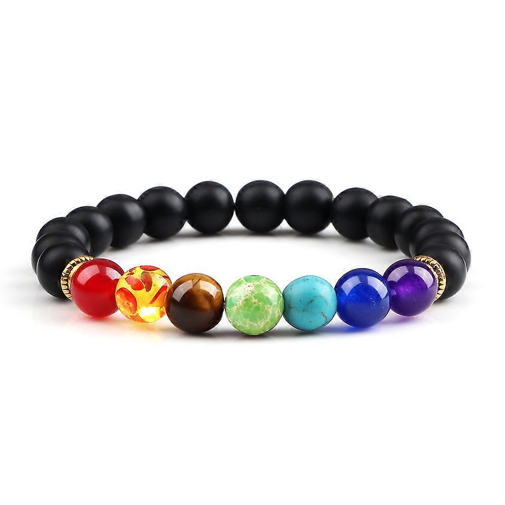 Hot 7 Chakra Healing Bracelets For Men 8mm Natural Tiger Eyes Lava Rock Protection Bracelets Women Elastic Bangles Wrist Jewelry