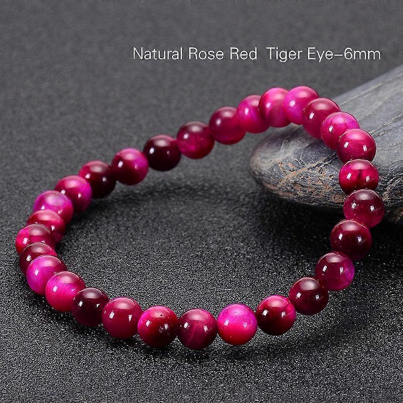 6-12mm Natural Stone Beads Bracelet Charm Pink Red Tiger Eye Stone Bracelets for Women Men Elastic Rope Bangle Yoga Jewelry Gift