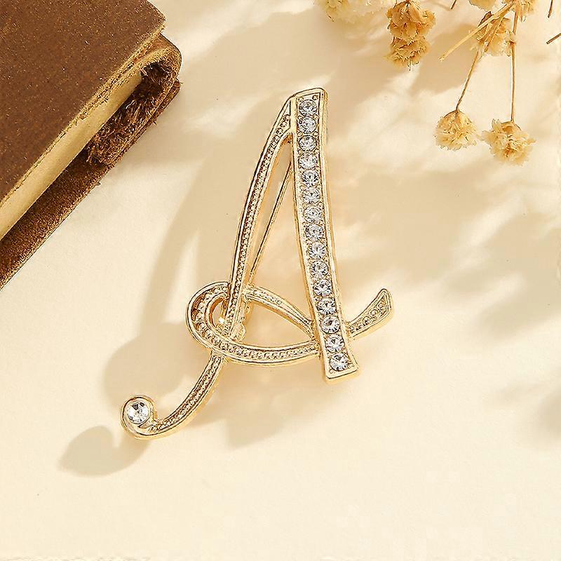 New 1PCS Unisex Crystal Rhinestone 26 Letters Women Collar Brooch Elegant Temperament Pin Jewelry