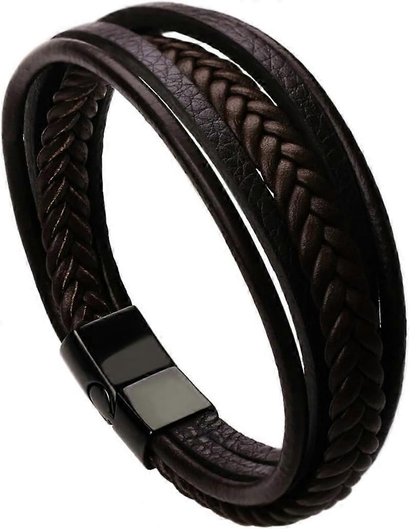 Mens Leather Bracelet with Magnetic Clasp Cowhide Multi-Layer Braided PU Leather Bracelets Gifts for Husband Dad Boyfriend