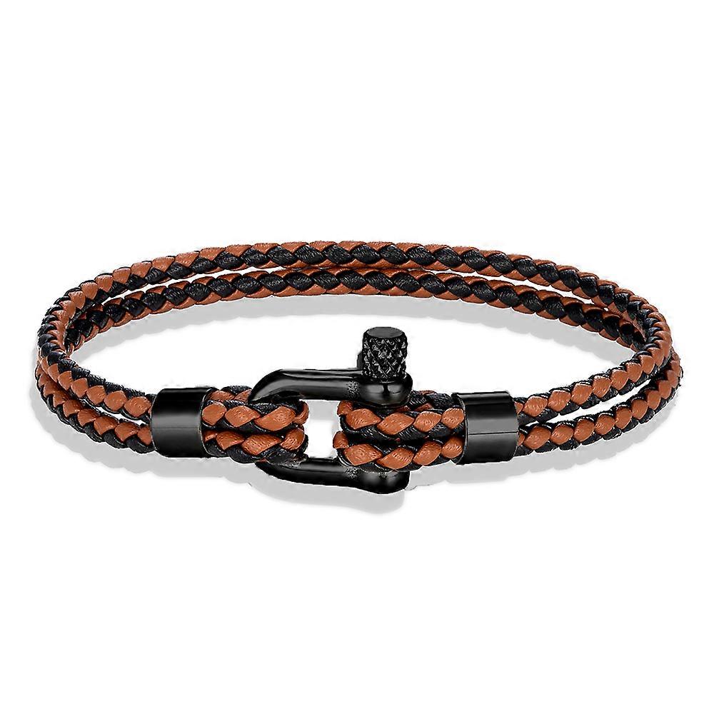 MKENDN Black Stainless Steel Shackle Bracelet Simple Double Layer Blue Leather Bracelets for Men Women Handmade Nautical Jewelry