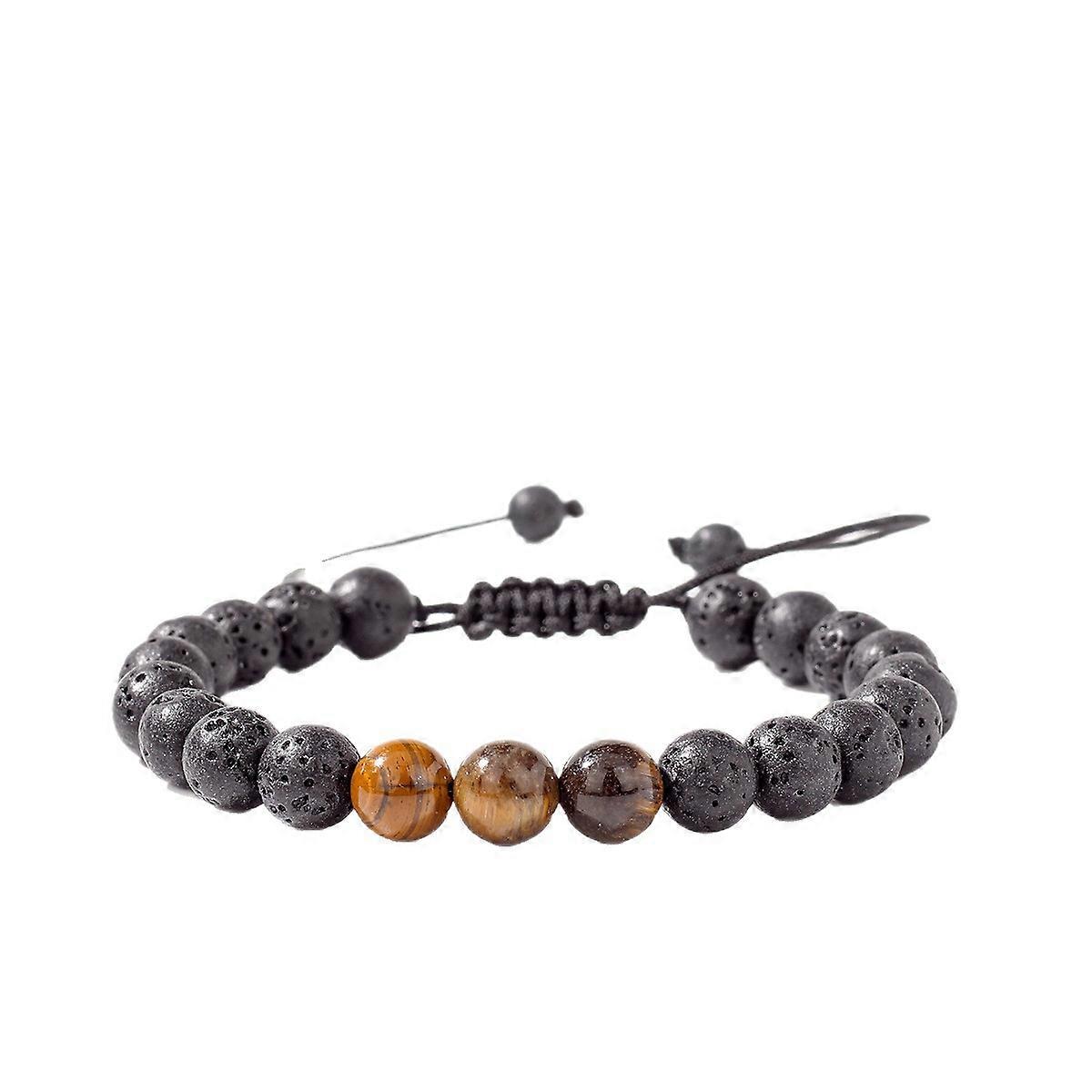 8MM Men Black Lava Beads Bracelet Tiger Eye Stone Adjustable Braided Rope Bangles For Couple Women Yoga Healing Jewelry Gift