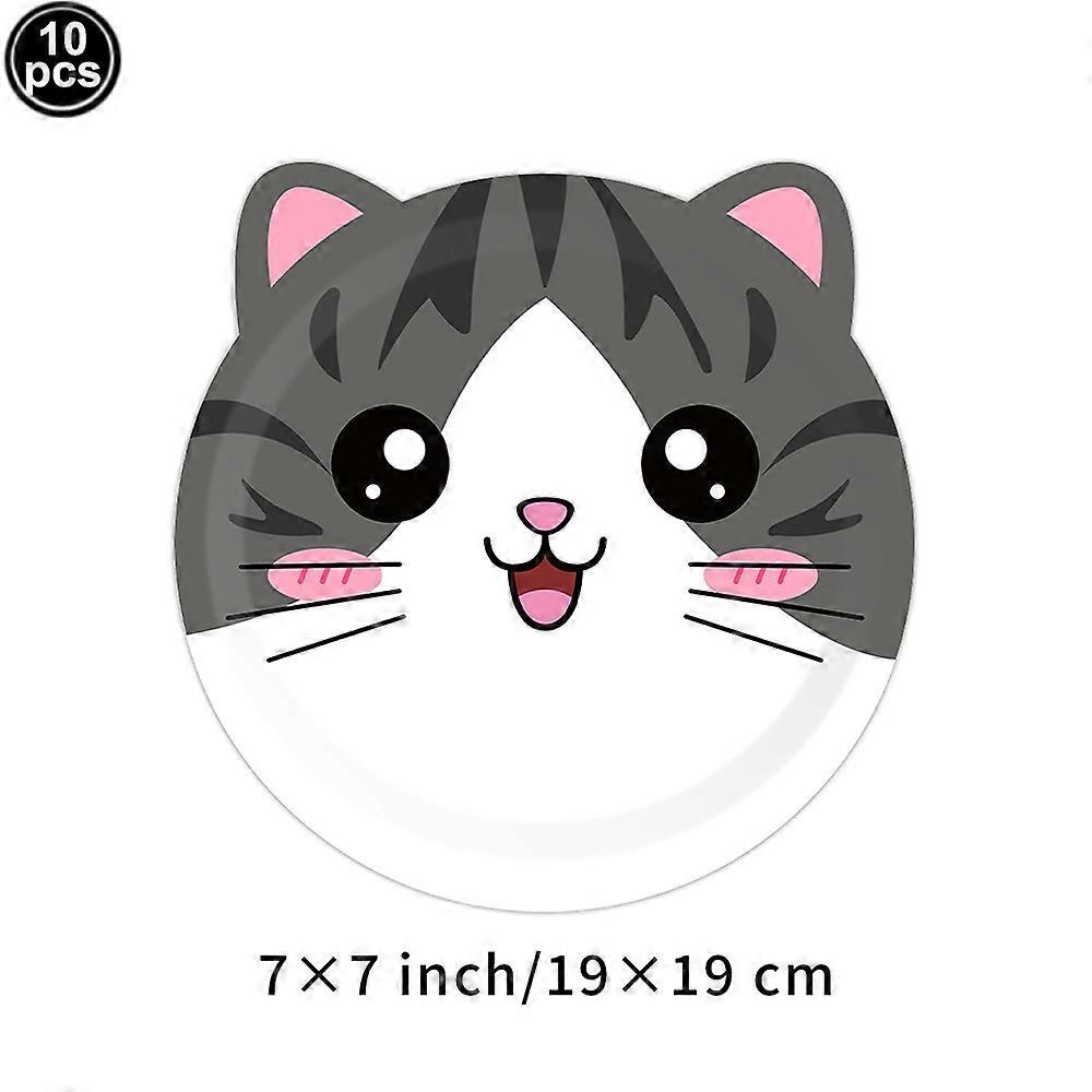 Cat Birthday Party Plates Napkins Cups Supplies Tableware Set Disposable Paper Cat Theme Decorations for Kids Birthday Party