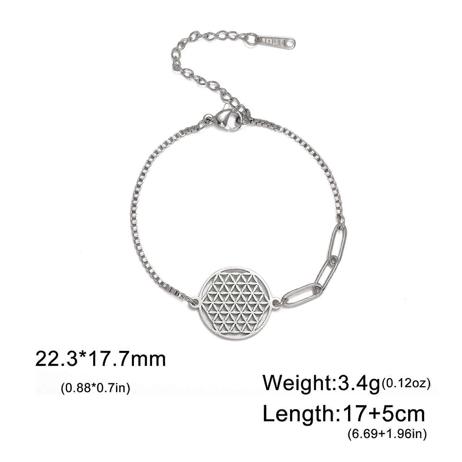 Flower of Life Charm Bracelet Stainless Steel Viking Amulet Bracelet Women's and Men's Vintage Jewelry Gift