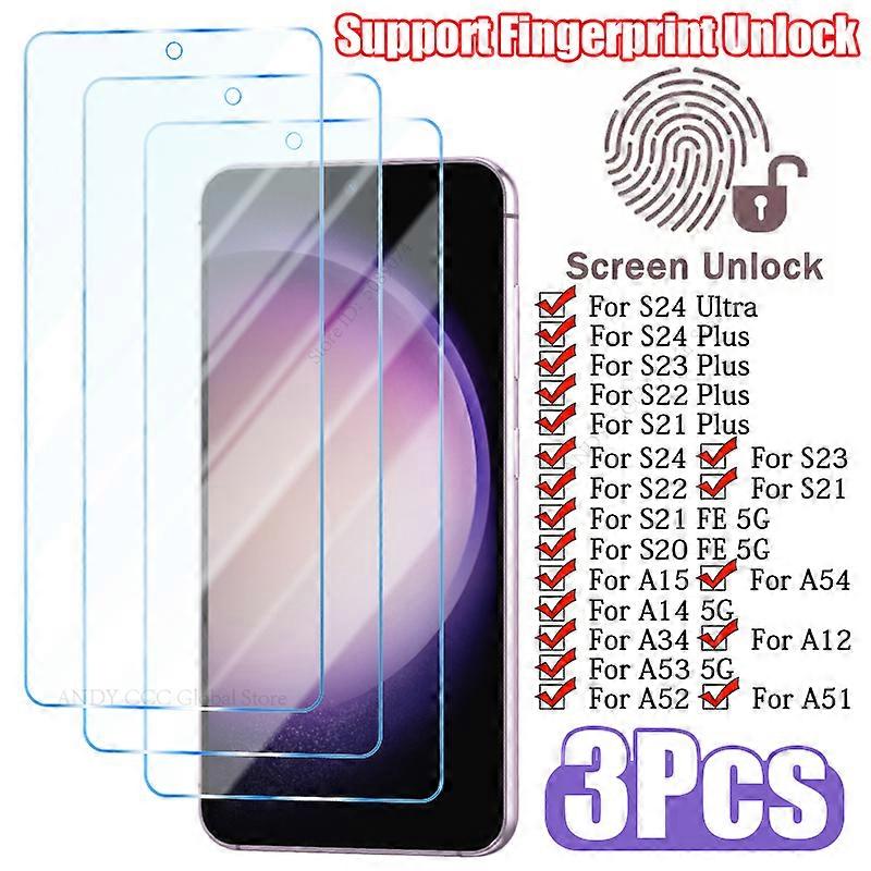 Protecteur d'��cran, 3 pi��ces, verre tremp�� pour d��verrouillage par empreinte digitale, pour Samsung S23 S22 S21 Plus S24 Ultra S20 S21 FE A1