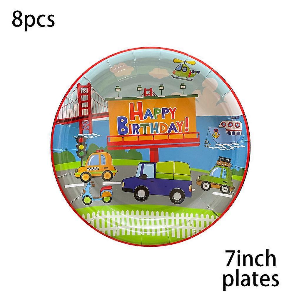 Transportation Bus Party Supplies Disposable Transportation Tablecloth Paper Plates Cups Happy Birthday Banner Decorations