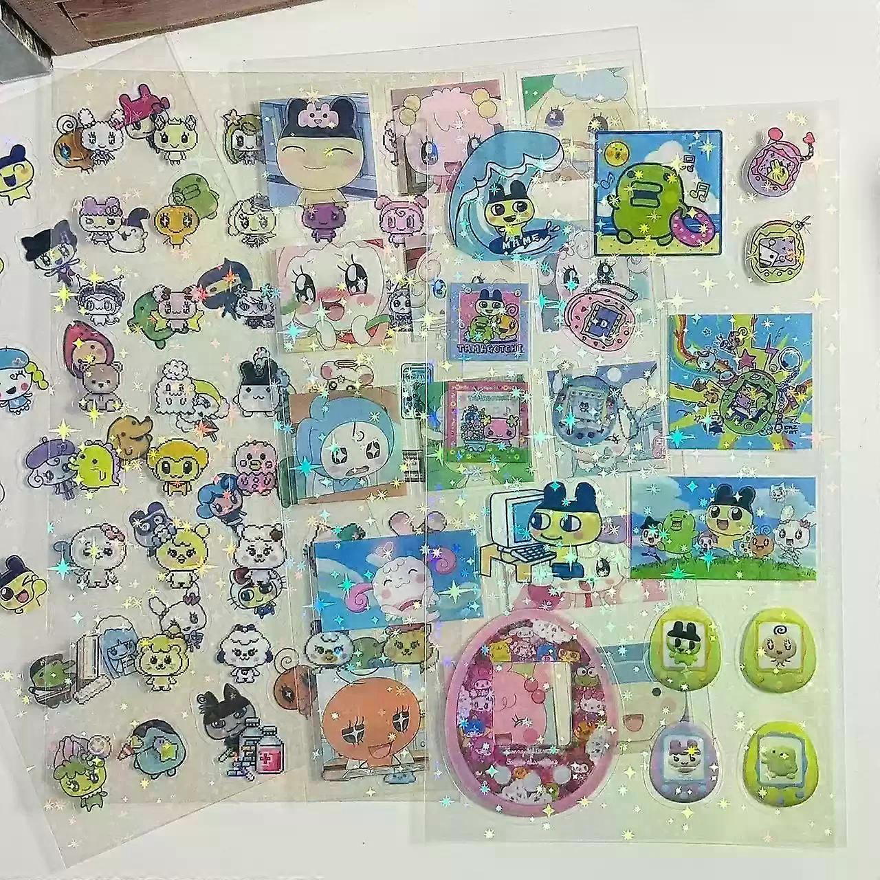Adorable Tamagotchi Stickers - Vintage Early Laser Flash Meeton Patch, Double Material Paper for Ehandbook, Mobileshell DIY Gift