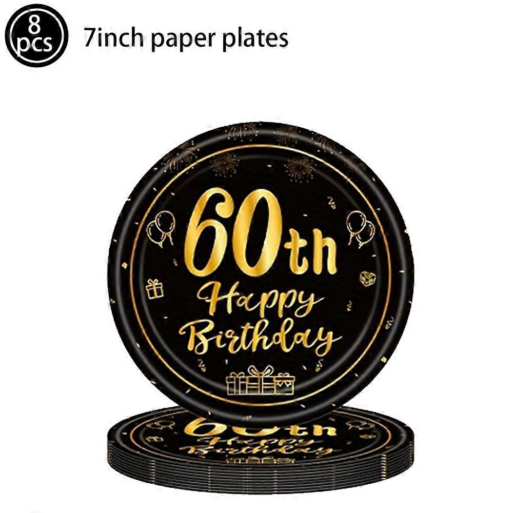 60th Birthday Decorations for Men Women Black and Gold 60th Paper Plate Cups Napkin Banner Balloon 60 Year Old Birthday Decors