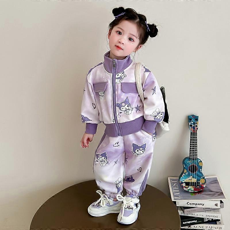 Cartoon Sanrio 2Pcs Kuromi Gradient Long Sleeved Jacket Spring Autumn New Style Cardigan Girl Sports Zipper Stylish Comfortset