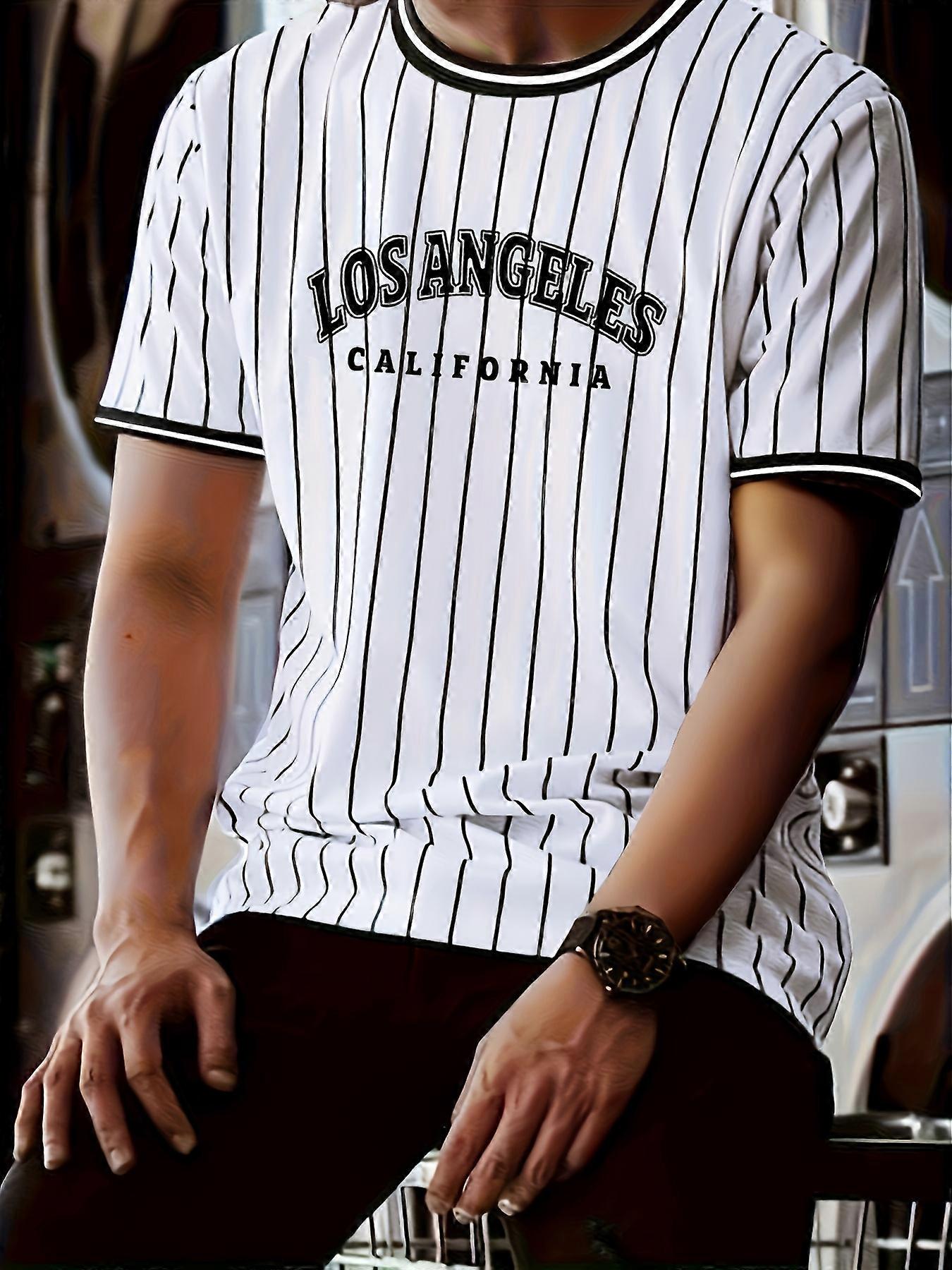 ��t�� nouvelle rayure Los Angeles californie impression T-shirt pour hommes �� manches courtes col rond t-shirts sport d��contract�� Streetwear s