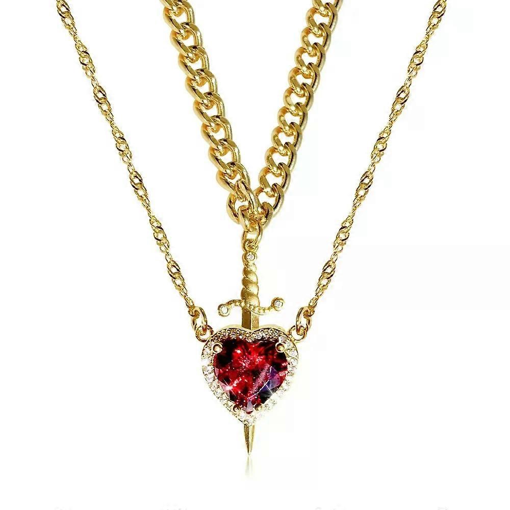 Couple Necklace Heart and Sword Pendant Necklace for Women Gothic Punk Romantic Valentine Day Jewelry Gifts Accessories