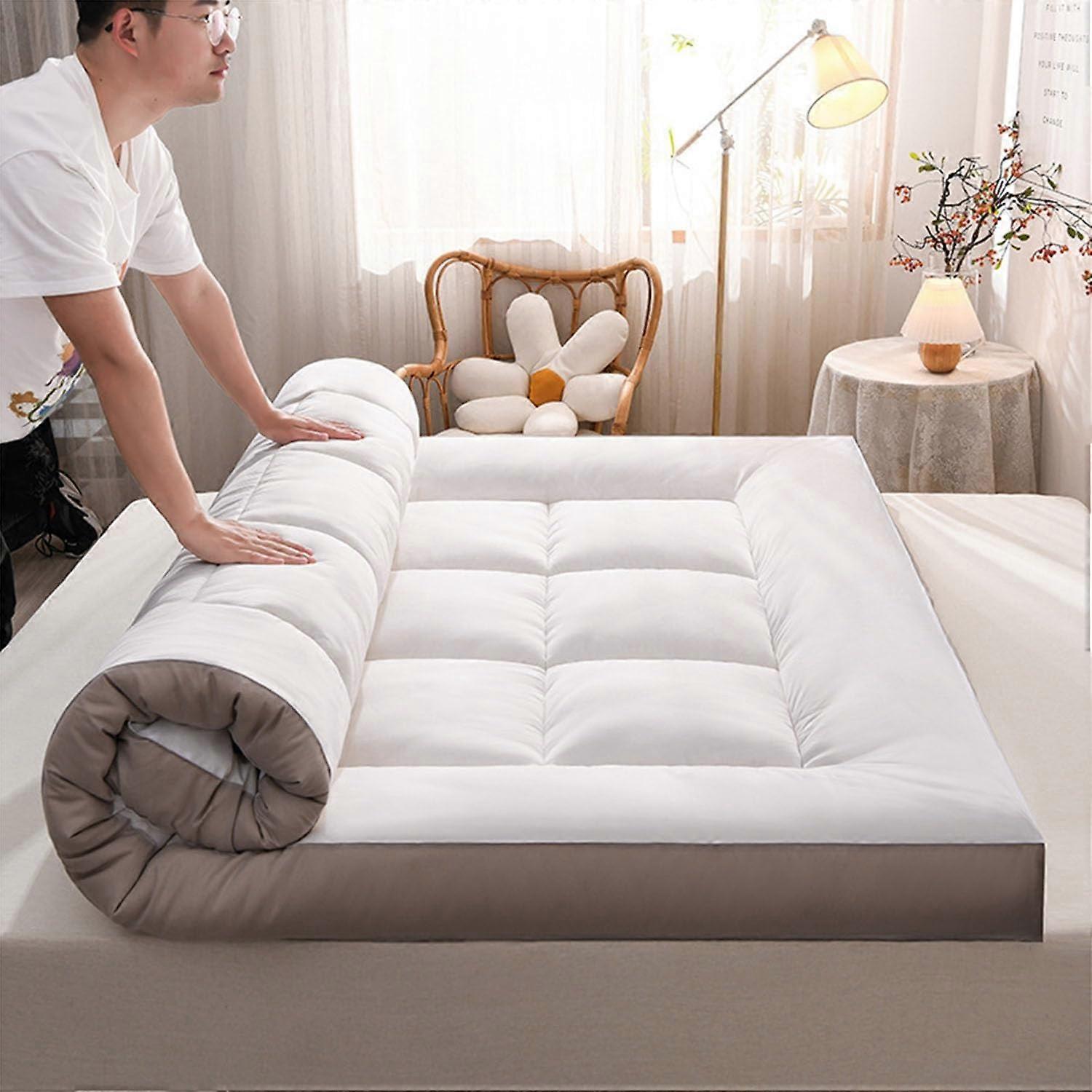 Foldable Futon Mattress 10cm Thick Floor Sleeping Pad with Pressure Relieving Support for Guest Bed Double Single 90x200cm White Grey