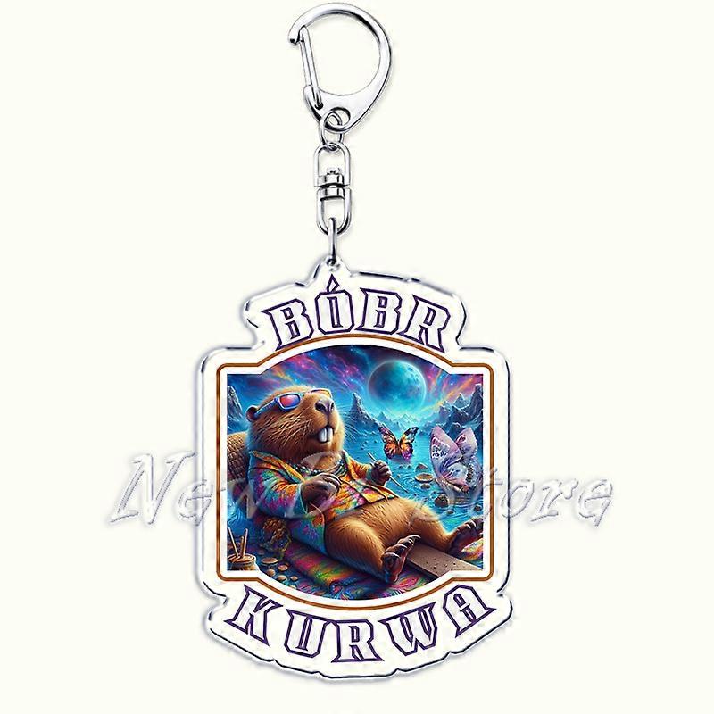 Funny Poland Bobr Kurwa Beaver Meme Acrylic Keychains Ring for Accessories Bag Pendant Key Chain Jewelry Fans Gifts