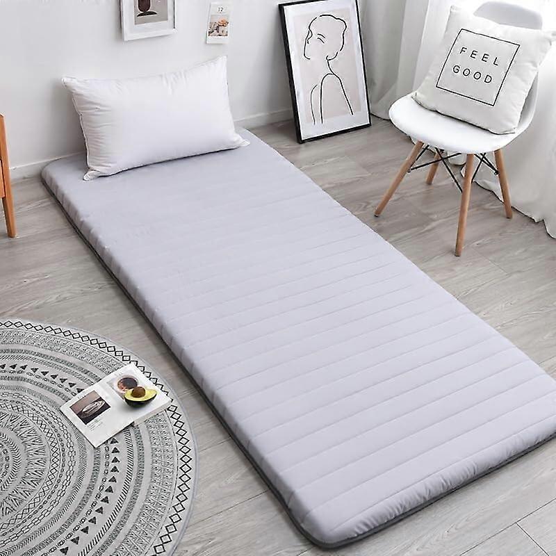 Japanese Floor Mattress Futon with Ergonomic Support, Foldable Cotton Sleeping Mat 90x200cm Blue Grey