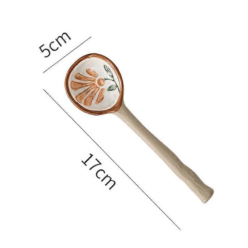 Petite cuill��re �� soupe en c��ramique de style japonais, cuill��re en gr��s, cuill��re �� long manche, cuill��re �� riz cr��ative et mignonne pour l