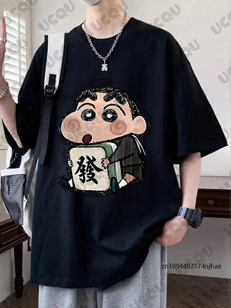 MINISO mignon dessin anim�� Crayon shin-chan imprim�� T-shirt pour hommes ��t�� coton �� manches courtes col rond t-shirts d��contract�� mode surdi