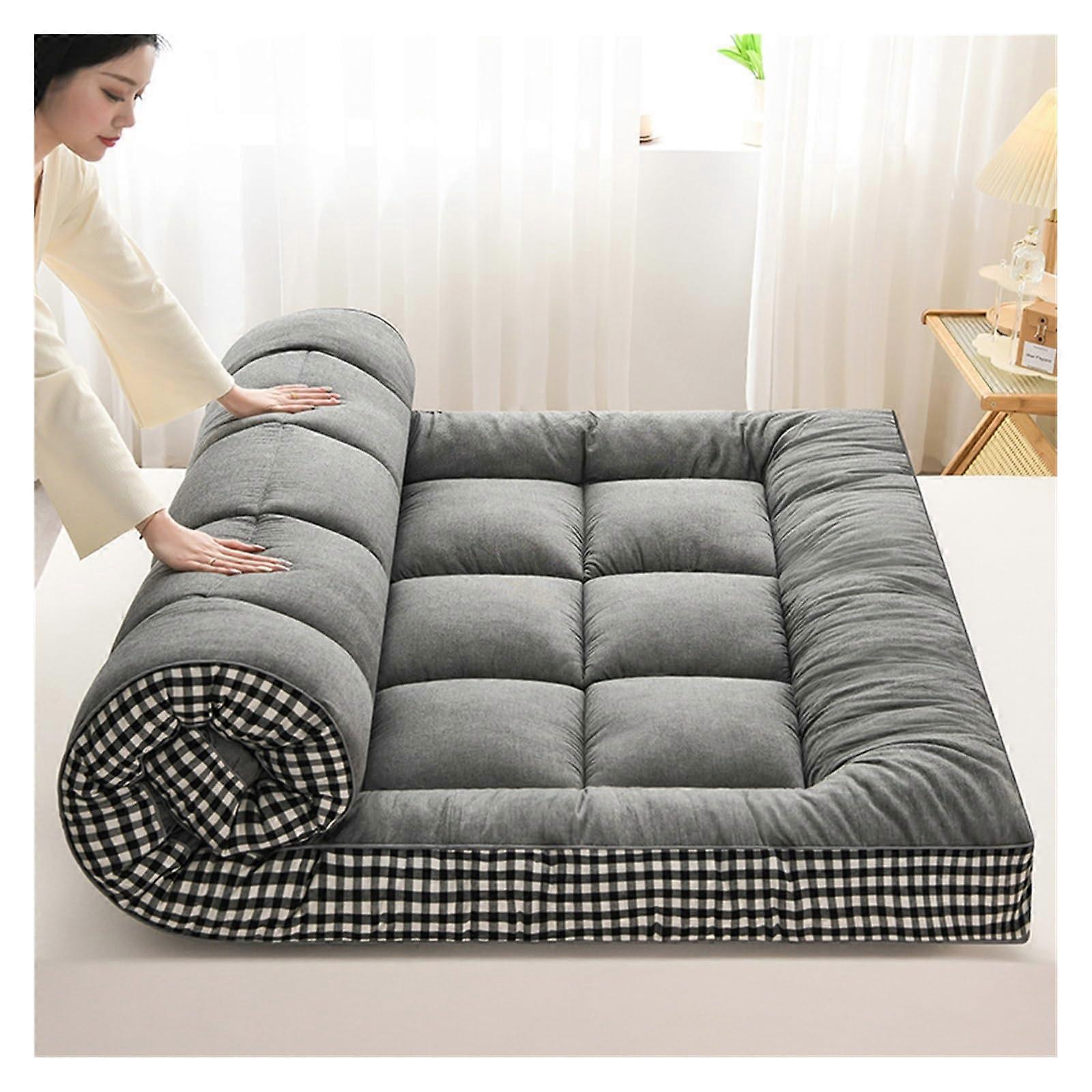 Japanese Futon Mattress Grey 150x200cm Foldable RollUp Floor Sleeping Mat with Memory Foam for Guests and Camping