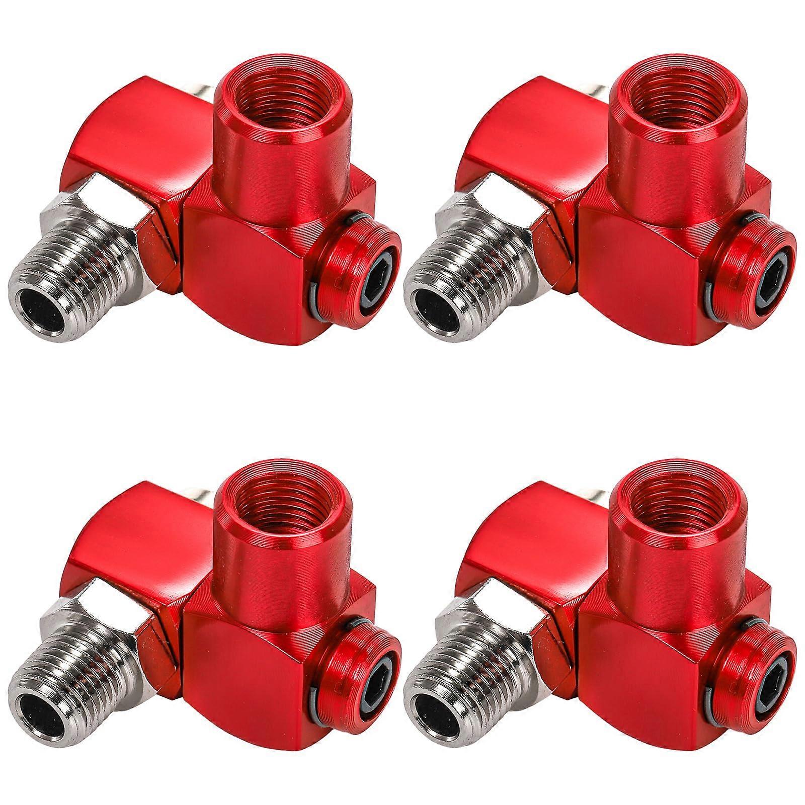 4 Pack 1/4 Inch NPT Air Hose Swivel Connector, Dual 360° Aluminum Pneumatic Fittings, Red, 150 PSI