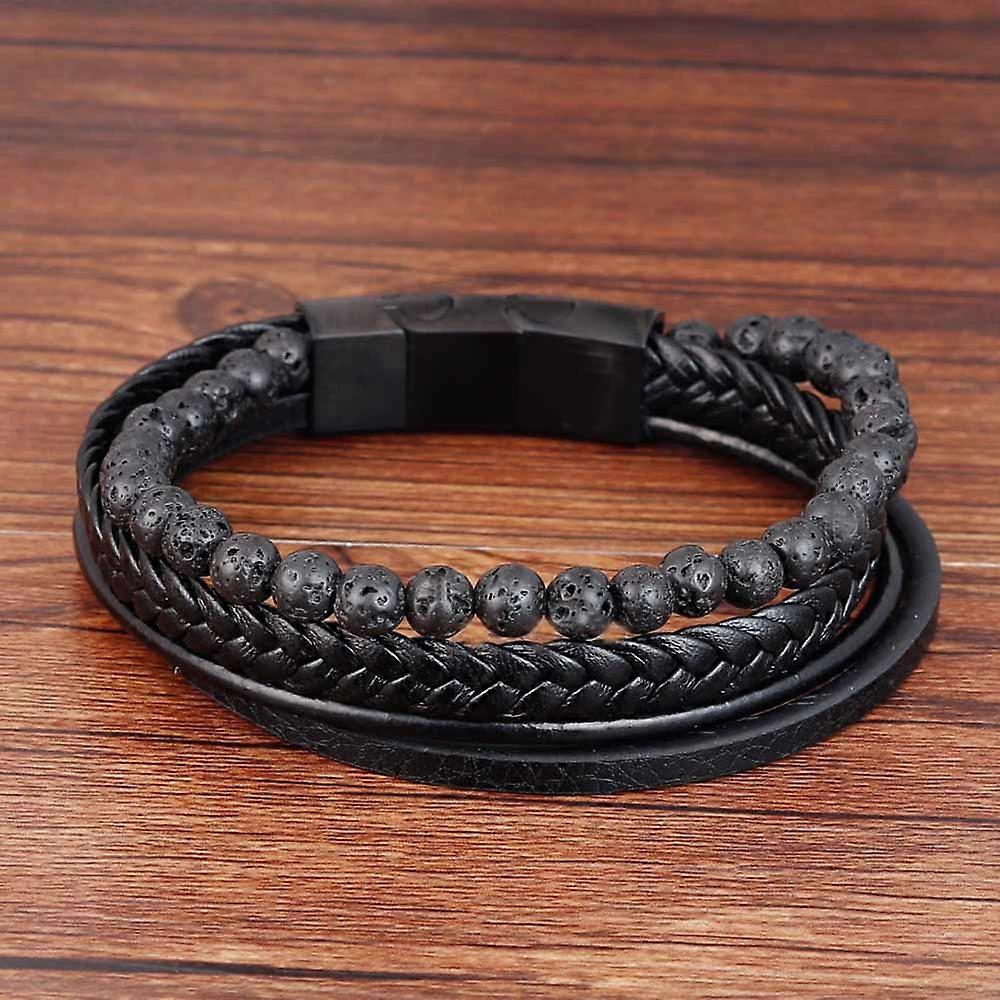 Men's Beaded Leather Bracelet Natural Stone Beads Multi layer Rope Stainless Steel Magnetic Clasp Wristband Male Jewelry