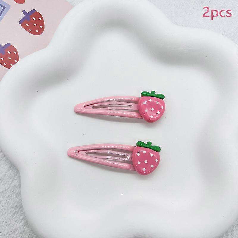 2Pcs Girl's Lovely Strawberry Hairpin, Pink BB Snap Clips, Cute Bang Hair Accessories.