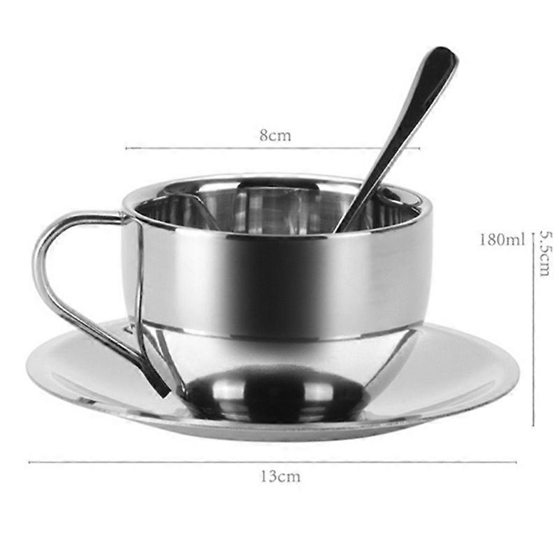 Ensemble de tasses Anti-br?lure Double couche en acier inoxydable 180, conception Simple 304, avec soucoupe et cuill��re, pour bureau, maison