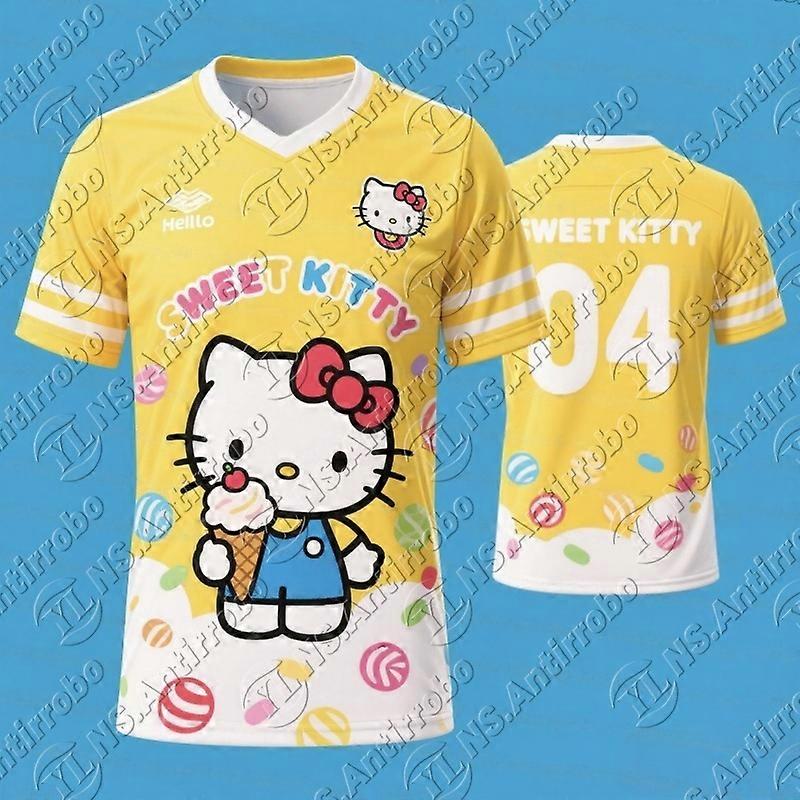 MINISO Hello Kitty dessin anim�� Anime �� manches courtes hommes et femmes Sports de plein air t-shirt style d��contract�� enfants et adultes im