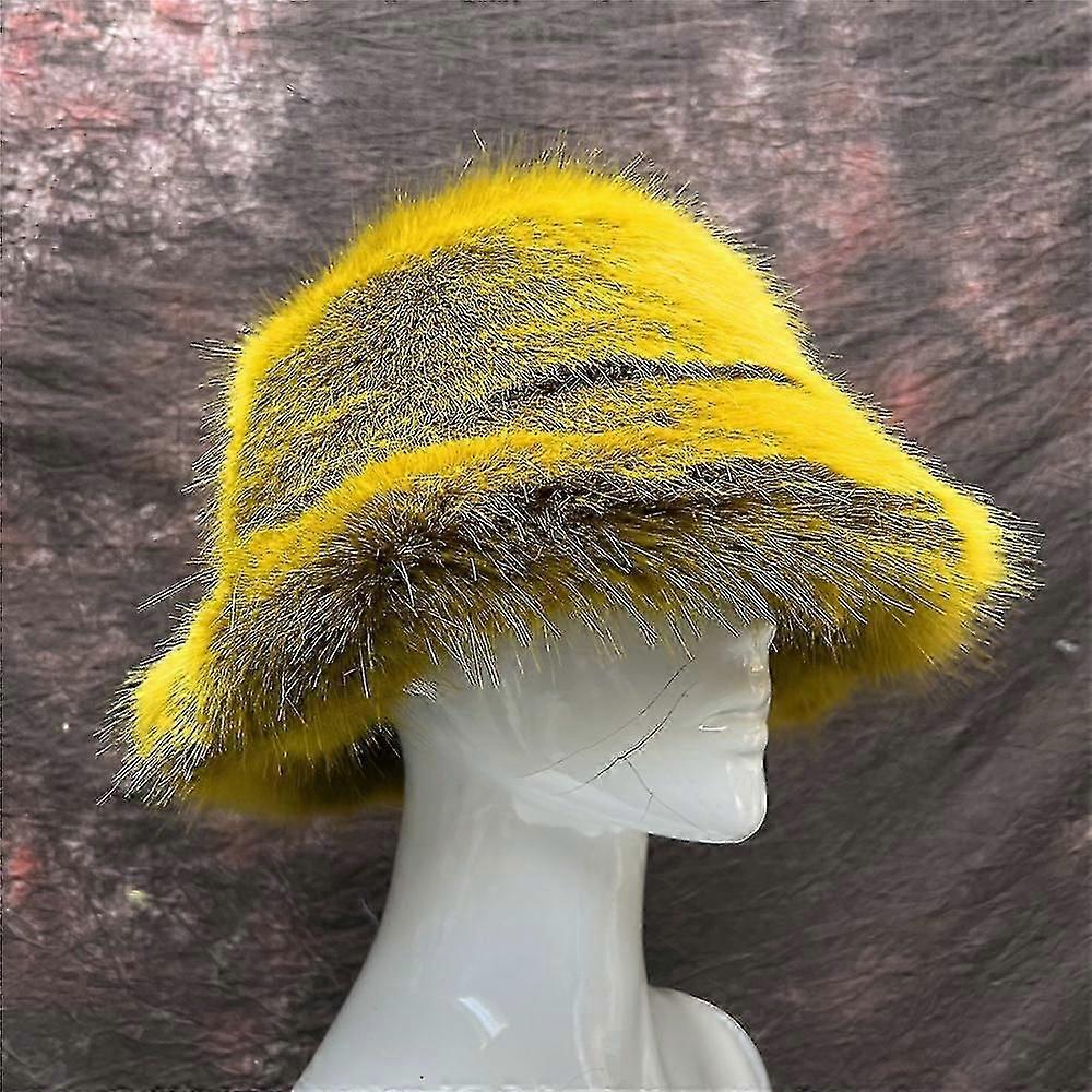 Women's Fluffy Faux Fox Fur Bucket Hat for Autumn Winter