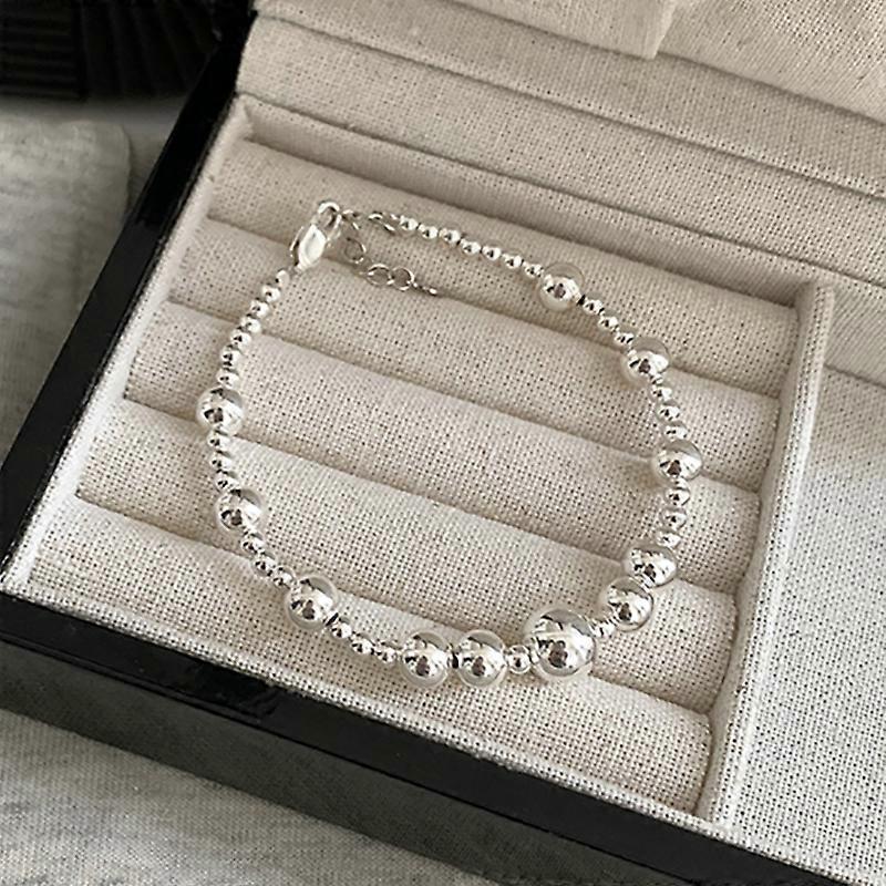 Foxanry 1 PC Silver Color Minimalist Bracelet For Women Couples New Fashion Creative Classic Round Geometric Beaded Jewelry Gift