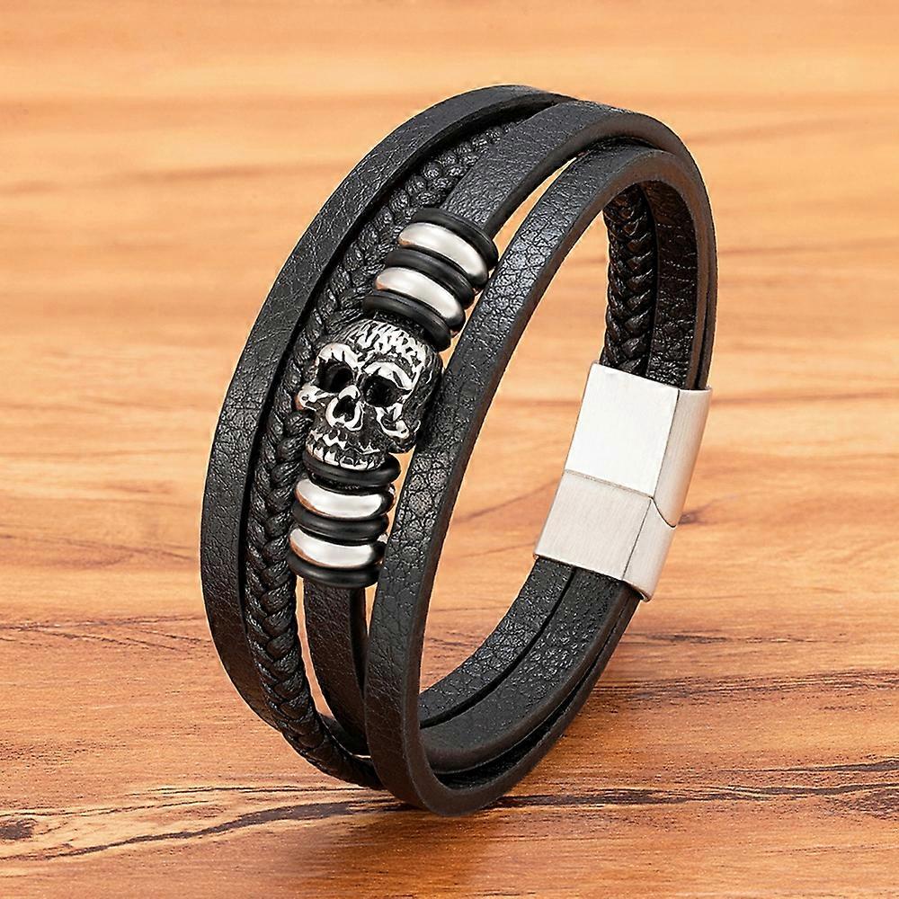 XQNI Fashion Men Bracelet Hand Homme Bracelets Woven Skull Hand Jewelry For Stainless Steel Magnet Clasp Leather Bangles Gift