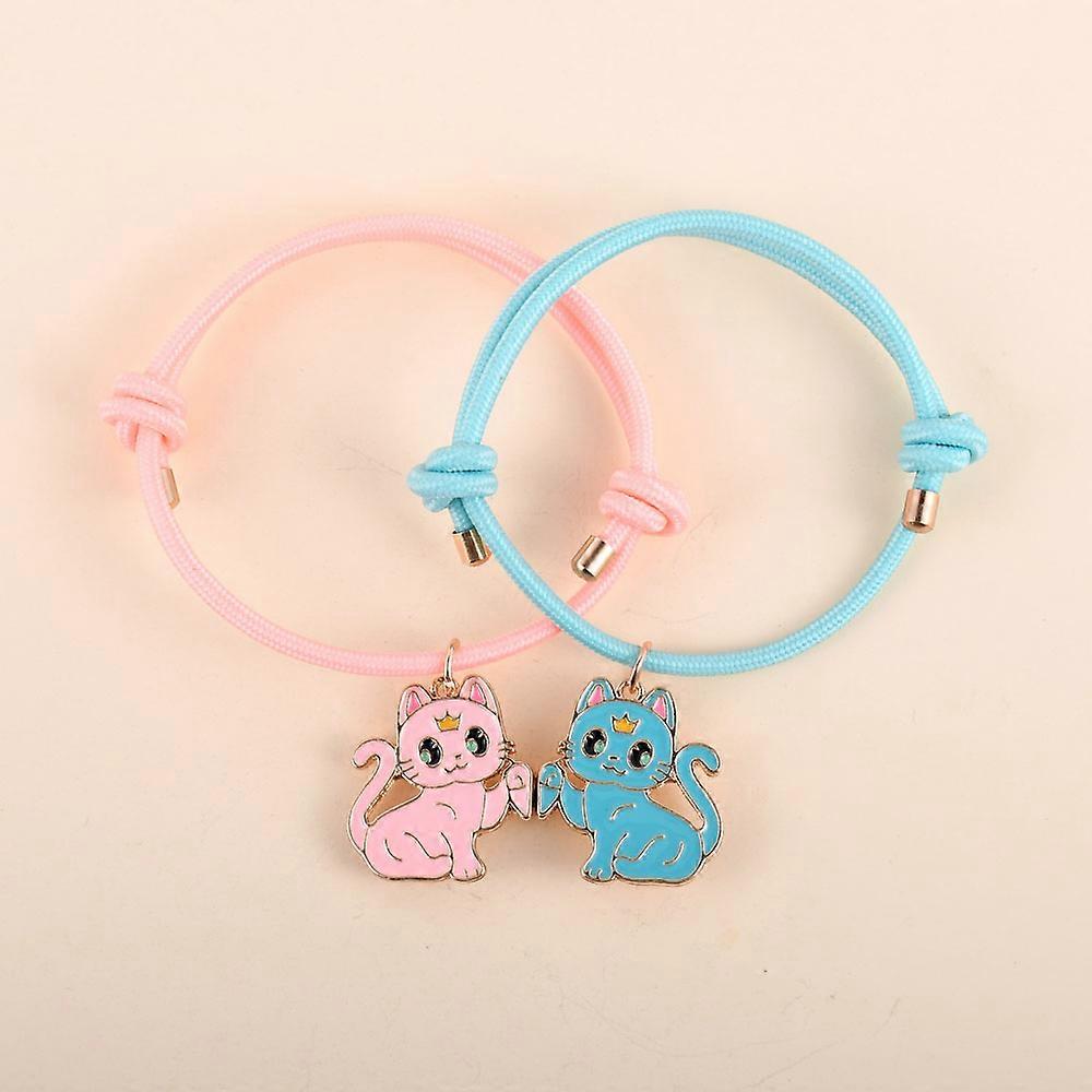 Lovecryst 2Pcs/ Set Cartoon Animal Multicolour Cat Best Friend Bracelet for Girls Fashion Friendship Gifts