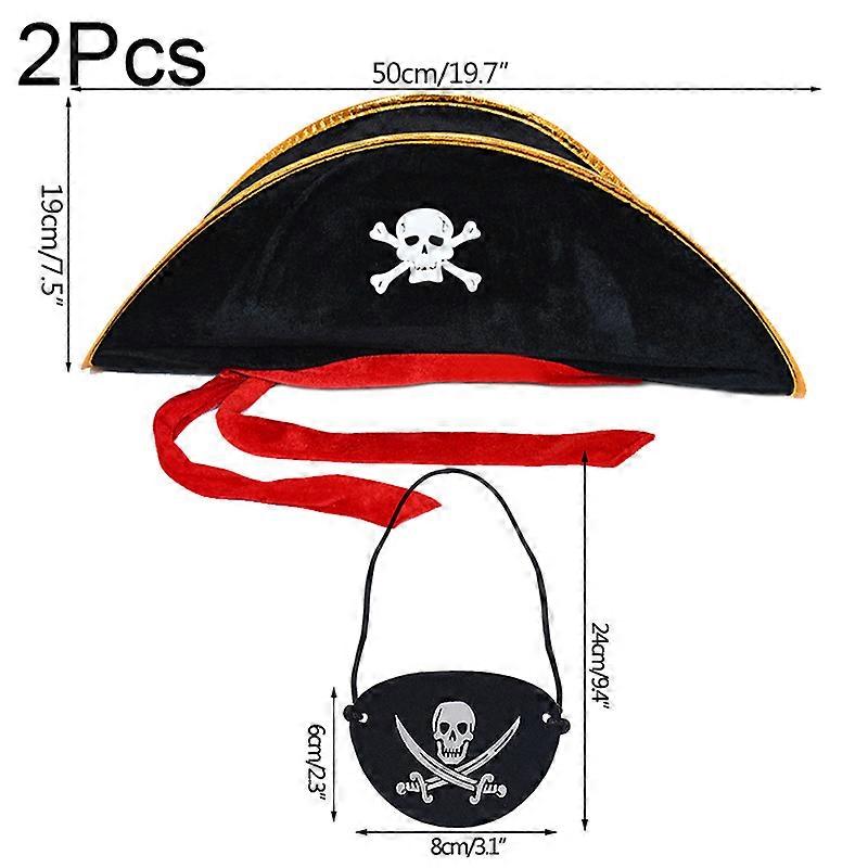 2pcs/set Pirate Hat And Pirate Skull Eye Patches Halloween Cosplay Captain Cap Headband For Adult Kids Birthday Party Decor Prop