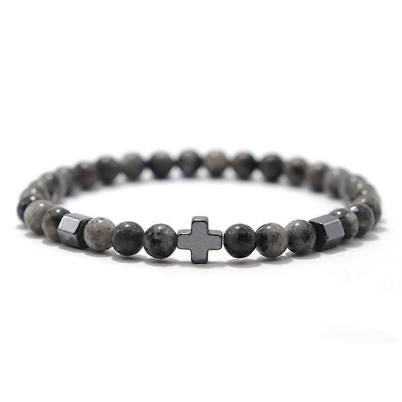 Charm Cross Beaded Men Bracelet Natural 6mm Howlite Tiger Eyes Hematite Stone Strand Braslet Leisure Healing Homme Joias Pulsera