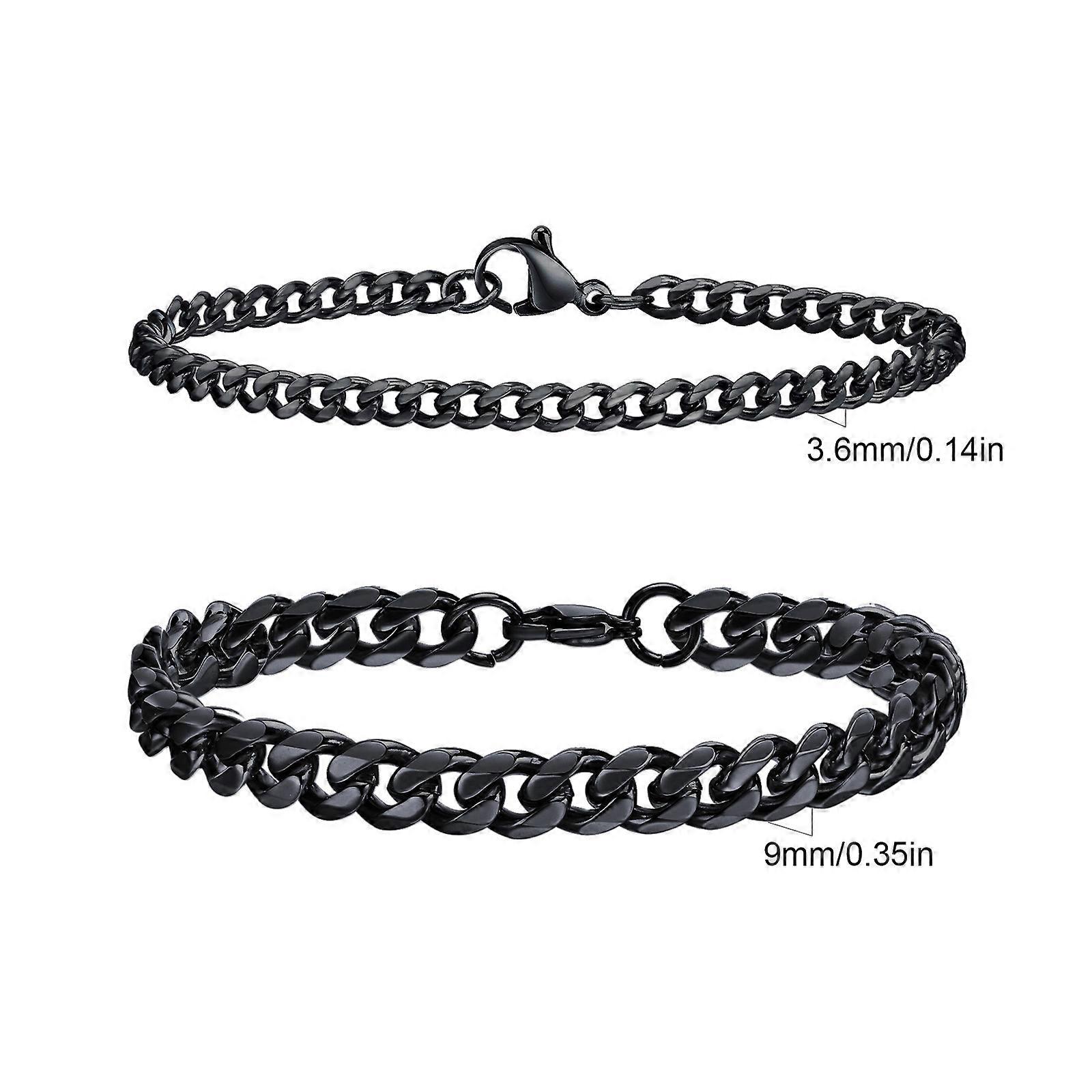 2pcs/set Cuban Chain Bracelet for Men,Waterproof Stainless Steel Miami Curb Wristband,Causal Jewelry Gift