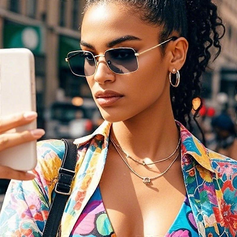 Hiking Fashion Metal Small Frame Square Anti Light Glasses Vintage Female Sun Glasses Women Outdoor UV Resistant Eyeglass