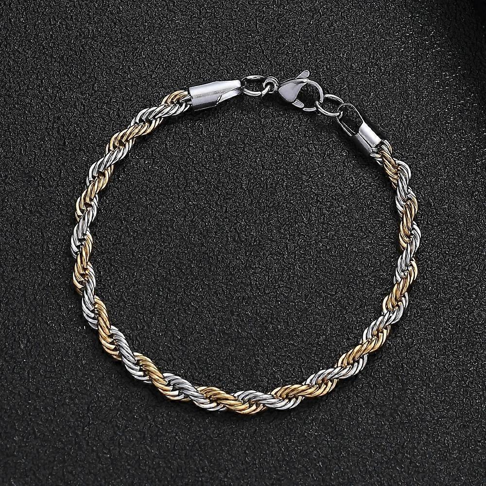 New Stainless Steel Half Gold Silver Color Twist Chain Bracelet for Men Women Kpop Jewelry Gift