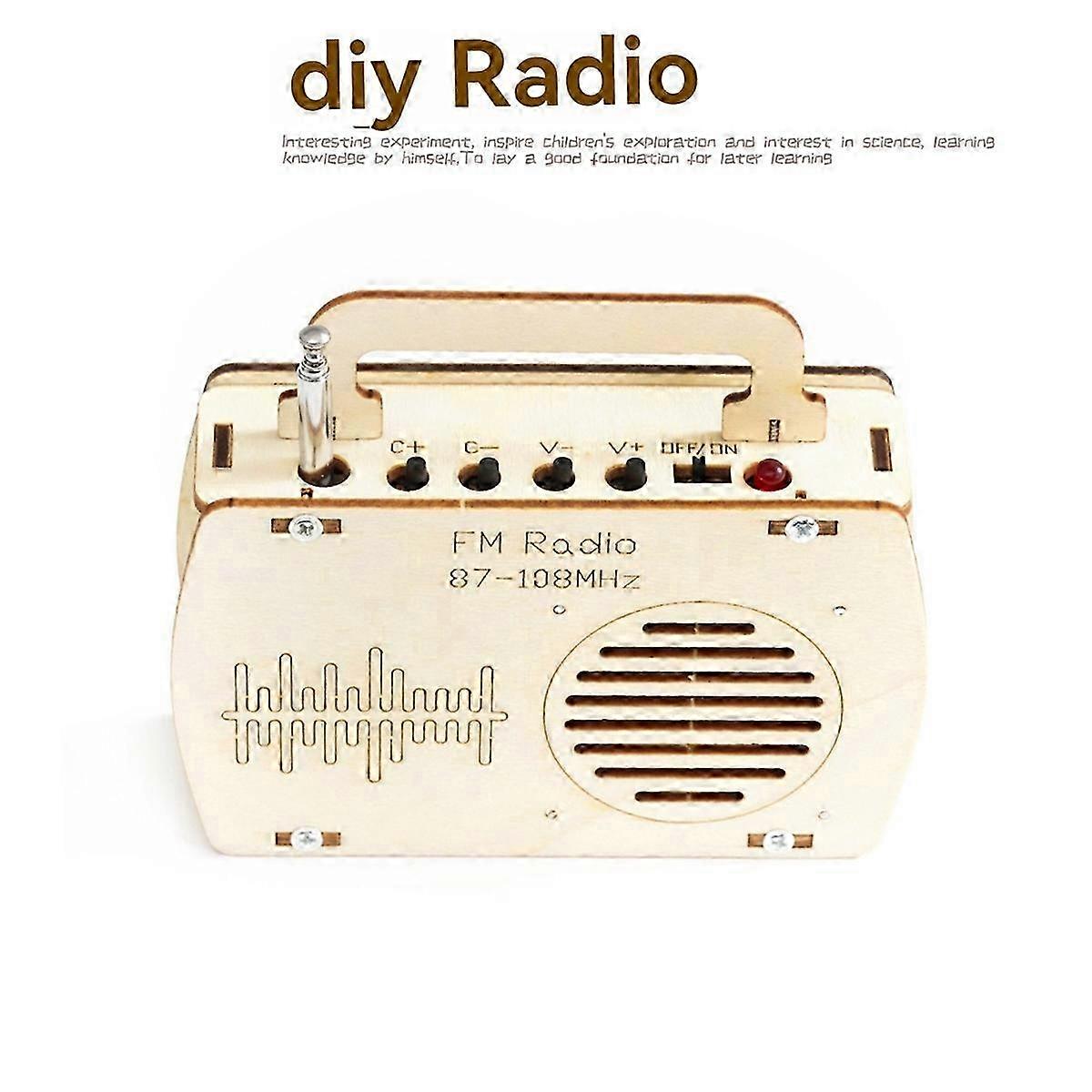 [Science experiment]: DIY assembly wooden FM radio model science experiment kits building toy. [DIY Accessories]: You can bring your own paints and crayons to paint with your favorite colors. After making, turn on the switch, then you can adjust your favorite channel or show the handicrafts. [Perfect Gift]:Science experiment set wooden building kits , suitable for children over 7 years old, great for birthdays and holidays. It's DIY kits, needs to finish by yourself. Power Supply: 2 x AA batteries (Not included batteries) Color: Wooden Material: Wood + Electronic Components Package Contents: 1 * DIY radio kit Only the above package content, other products are not included. Note: Light reflection and different displays may cause the color of the item in the picture a little different from the real thing. The measurement allowed error is +/- 1-3cm. Product Notes: Please allow a little manual errors.Due to the lighting of the photos and the difference of monitors, the pictures may not reflect the actual color of the real item. Please confirm acceptance before ordering. About Shipping: Please ensure your shipping informations are correct to avoid delivery issues. All orders are shipped within 3 days after payment. Delivery usually takes 8–12 days, The specific delivery time is depend on circumstances. If you have any questions during your purchase, feel free to contact us. We will respond you within 24 hours.