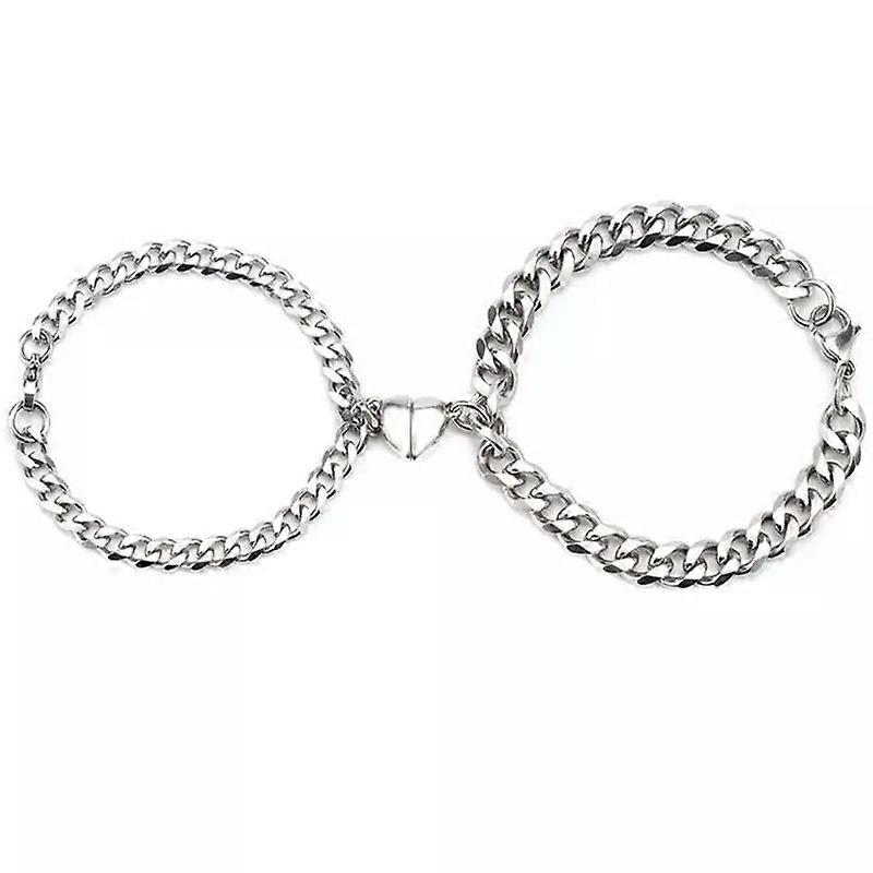 1Pair Romantic Couple Bracelet for Women Men Heart Magnet Lock Key Double Layer Chain Bracelet Trendy Lover Jewelry Gifts