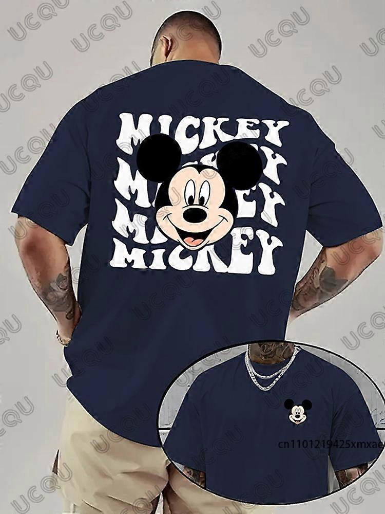 T-shirt manches courtes col rond pour homme, estival et d��contract��, surdimensionn��, en coton, imprim�� Disney Mickey Mouse, 2026