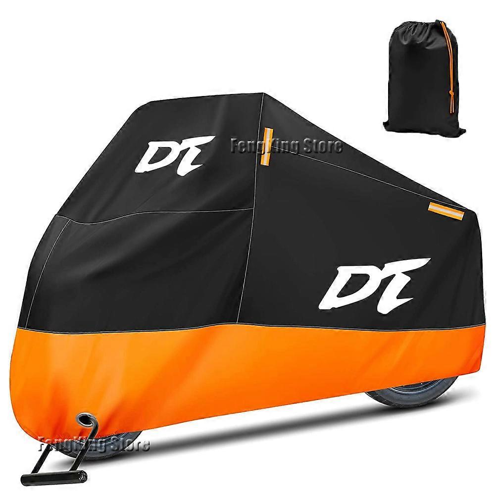 Specifications<br>Hign-concerned Chemical:None<br>Origin:Mainland China<br>Material:210Dpolyester taffeta PU plated<br>210D Motorcycle Cover Waterproof Motor Dust Rain UV Protective Outdoor Cover All Season<br>Condition: 100% brand new<br>Material Type: 210Dpolyester taffeta PU plated<br>Item Name:Motorcycle Cover<br>Color:Orange<br>Size:s-4xl<br>【Advanced Weatherproof Protection】Our motorcycle cover is made of high-210D fabric with excellent waterproof performance. This car cover prevents rain, snow, dust, and bird droppings - ensuring that your motorcycle remains in good condition in any weather.<br>【Applicable model】 Universal, it can become the perfect motorcycle cover for most standard size motorcycles on road and off road, making it the ideal choice for anyone who wants a high-motorcycle cover. (The size diagram of the car cover on the page is for reference)<br>Our waterproof outdoor motorcycle cover is equipped with a lock hole design in the front wheel area, adding an additional safety layer to protect your motorcycle from theft. You can use cables, chains, or U/D lock covers to ensure motorcycle safety.<br>【Safety fit】 The motorcycle cover is equipped with 4 night reflective strips and wind buckles. Our motorcycle cover can remain in place even in strong winds, ensuring the safety of your motorcycle. Reflective strips are highly visible in the dark, thereby increasing safety.<br>【Convenient to carry】 The storage bag and small size can be folded into small packaging, making it easy to carry and carry. It is easy to transport and store, making it perfect for carrying around, no matter where you explore.<br>Package List:<br>1 x Motorcycle cover<br>1 x gift bag