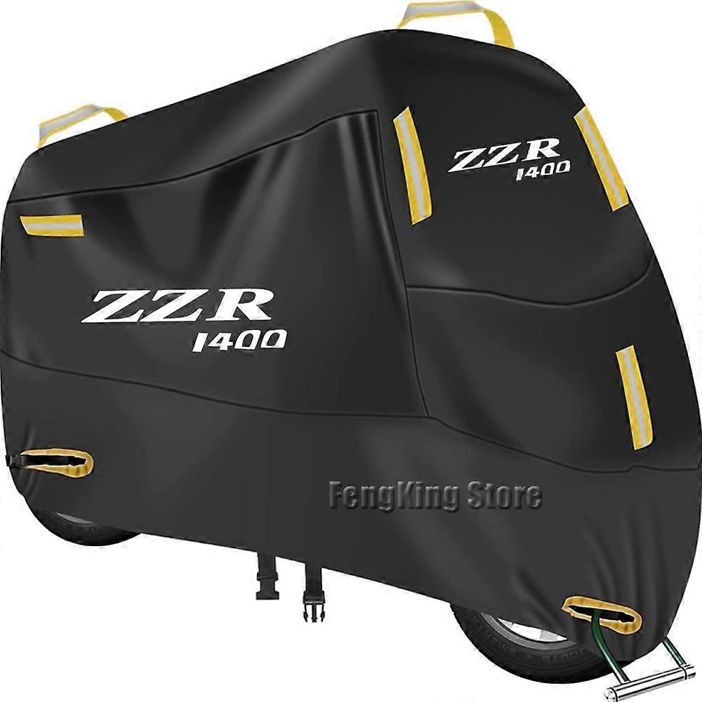 Specifications<br>Hign-concerned Chemical:None<br>Origin:Mainland China<br>Material:300D polyester taffeta PU coating<br>300D motorcycle cover waterproof motor dustproof, rainproof, UV resistant outdoor cover all-weather<br>Status: 100% brand new<br>Material type: 300D polyester taffeta PU coating<br>Item Name: Motorcycle Cover<br>Color: Black (green reflective strip)<br>Size: s-4xl<br>【Advanced Weatherproof Protection】Our motorcycle cover is made of high-quality 300D fabric with excellent waterproof performance. This car cover prevents rain, snow, dust, and bird droppings - ensuring that your motorcycle remains in good condition in any weather.<br>【Applicable model】 Universal, it can become the perfect motorcycle cover for most standard size motorcycles on road and off road, making it the ideal choice for anyone who wants a high-quality motorcycle cover. (The size diagram of the car cover on the page is for reference)<br>Our waterproof outdoor motorcycle cover is equipped with a lock hole design in the front wheel area, adding an additional safety layer to protect your motorcycle from theft. You can use cables, chains, or U/D lock covers to ensure motorcycle safety.<br>【Safety fit】 The motorcycle cover is equipped with 7 night reflective strips and wind buckles. Our motorcycle cover can remain in place even in strong winds, ensuring the safety of your motorcycle. Reflective strips are highly visible in the dark, thereby increasing safety.<br>【Convenient to carry】 The storage bag and small size can be folded into small packaging, making it easy to carry and carry. It is easy to transport and store, making it perfect for carrying around, no matter where you explore.<br>Package List:<br>1 x Motorcycle cover<br>1 x gift bag<br>For Kawasaki ZZR250 ZZR600 ZZR1200 ZZR1400