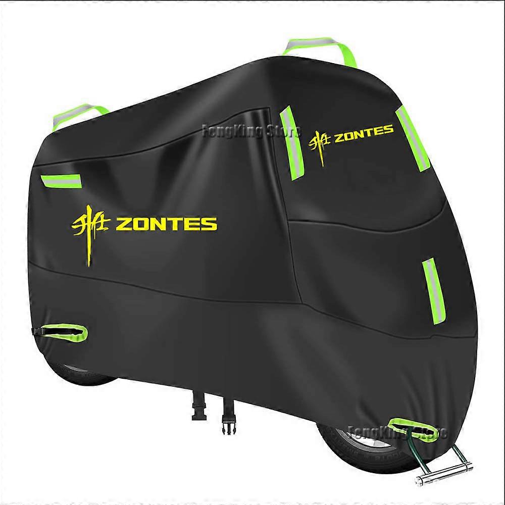 Specifications<br>Hign-concerned Chemical:None<br>Origin:Mainland China<br>Material:300D polyester taffeta PU coating<br>300D motorcycle cover waterproof motor dustproof, rainproof, UV resistant outdoor cover all-weather<br>Status: 100% brand new<br>Material type: 300D polyester taffeta PU coating<br>Item Name: Motorcycle Cover<br>Color: Black (green reflective strip)<br>Size: s-4xl<br>【Advanced Weatherproof Protection】Our motorcycle cover is made of high-300D fabric with excellent waterproof performance. This car cover prevents rain, snow, dust, and bird droppings - ensuring that your motorcycle remains in good condition in any weather.<br>【Applicable model】 Universal, it can become the perfect motorcycle cover for most standard size motorcycles on road and off road, making it the ideal choice for anyone who wants a high-motorcycle cover. (The size diagram of the car cover on the page is for reference)<br>Our waterproof outdoor motorcycle cover is equipped with a lock hole design in the front wheel area, adding an additional safety layer to protect your motorcycle from theft. You can use cables, chains, or U/D lock covers to ensure motorcycle safety.<br>【Safety fit】 The motorcycle cover is equipped with 7 night reflective strips and wind buckles. Our motorcycle cover can remain in place even in strong winds, ensuring the safety of your motorcycle. Reflective strips are highly visible in the dark, thereby increasing safety.<br>【Convenient to carry】 The storage bag and small size can be folded into small packaging, making it easy to carry and carry. It is easy to transport and store, making it perfect for carrying around, no matter where you explore.<br>Package List:<br>1 x Motorcycle cover<br>1 x gift bag<br>For ZONTES 368G ADV G1-125 350 GK ABS GK-125