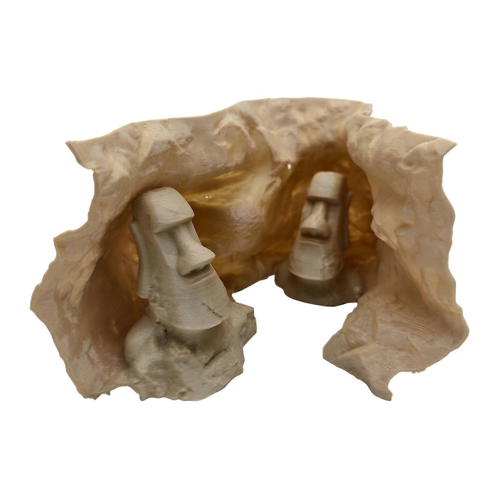 Aquarium Cave Tunnel Moai Statues Hideout for Betta, Shrimp & Small Fish – Viewing Ports, Substrate-Friendly
