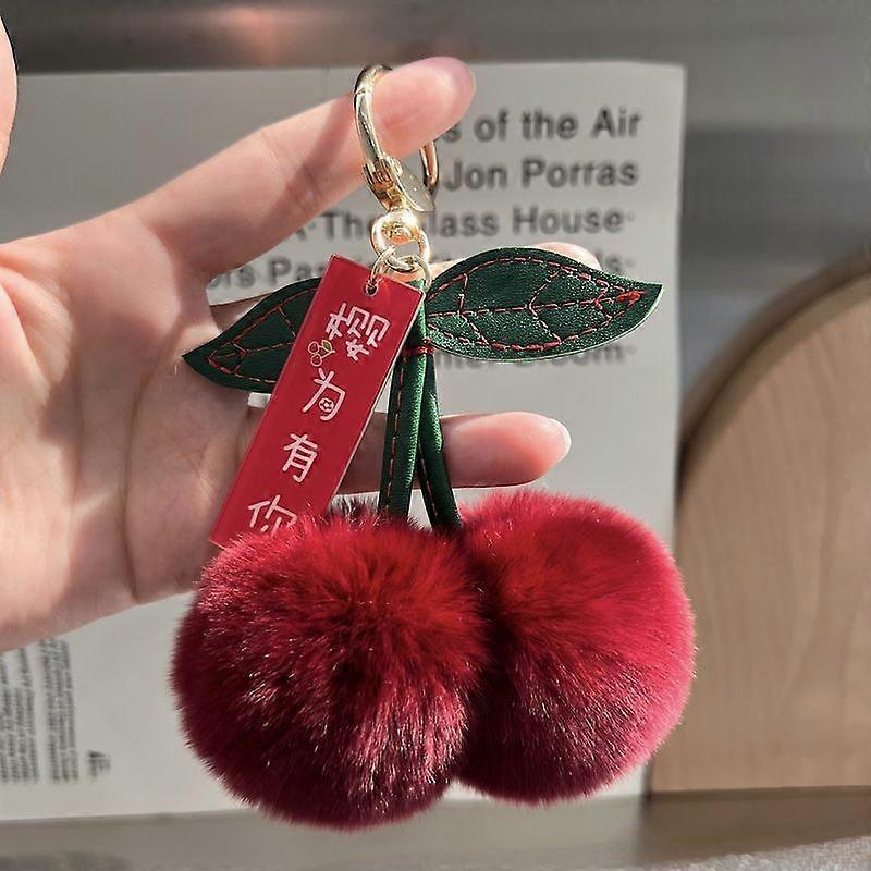 Charming Cherry Plush Ball Keychain, Cartoon Ball Car Key Pendant and Bag Lanyard, Perfect Gift for Girlfriend