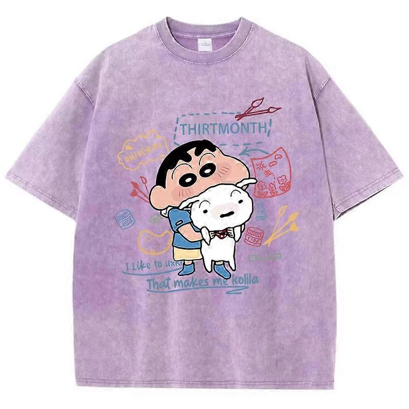 ��t�� hommes Crayon Shin-Chan tenant en Xiaobai fille lav�� coton t-shirt am��ricain r��tro �� manches courtes t-shirts d��contract�� unisexe hauts