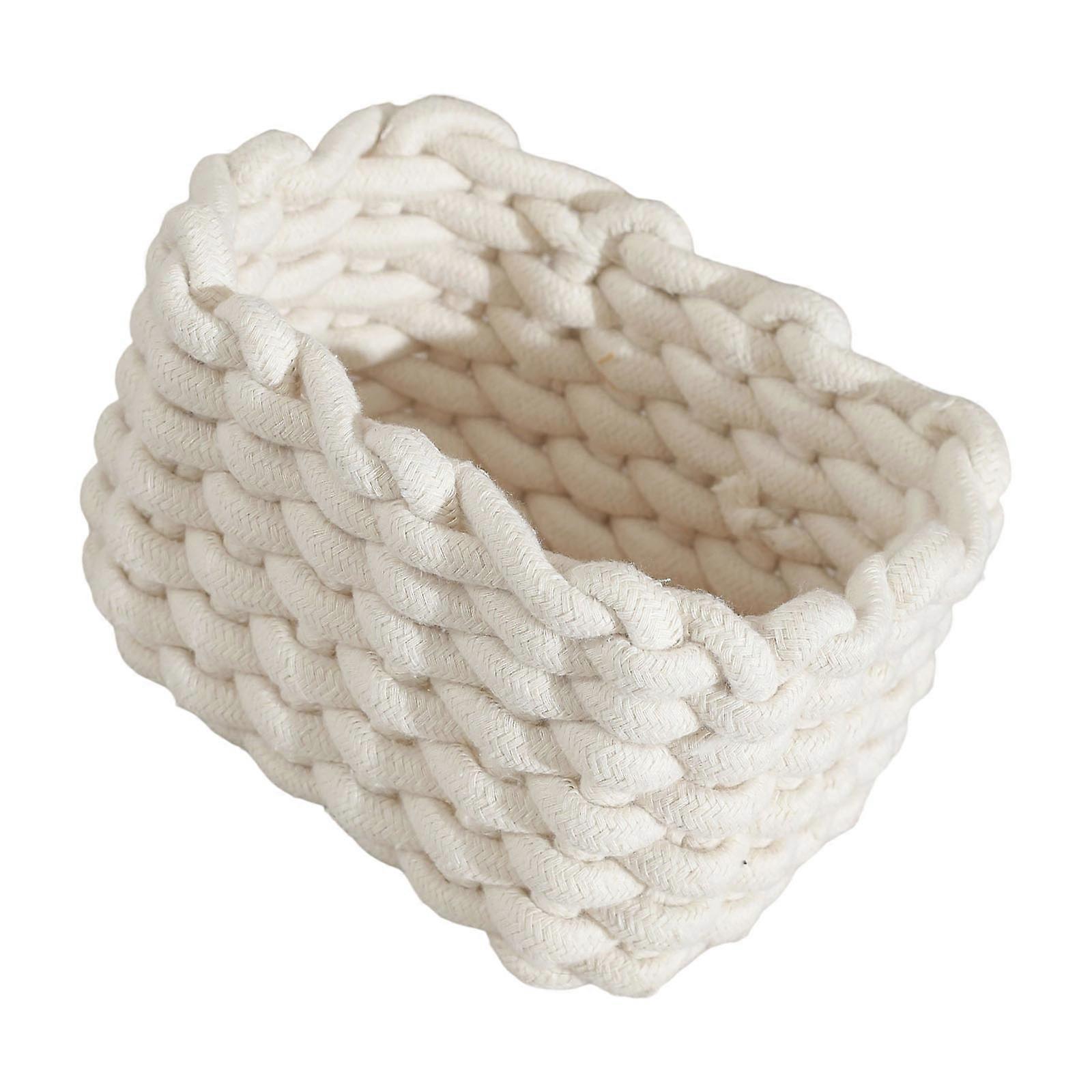 Large Capacity Cotton Rope Storage Basket Artisanal Fabric Planner For Bedroom Living Room Thin Transportable Home Deck White S