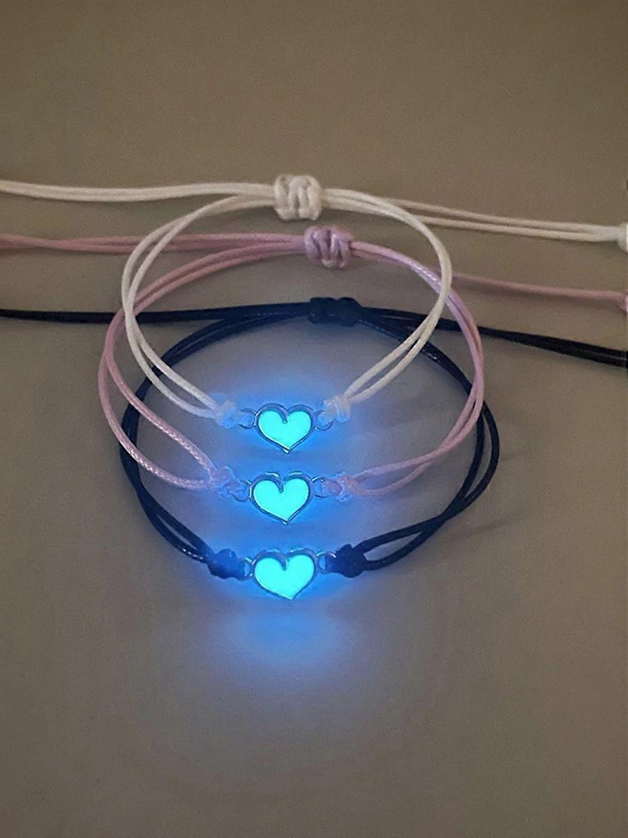 Luminous heart-shaped accessories Good sister bracelet hand-woven wax string 3-piece set