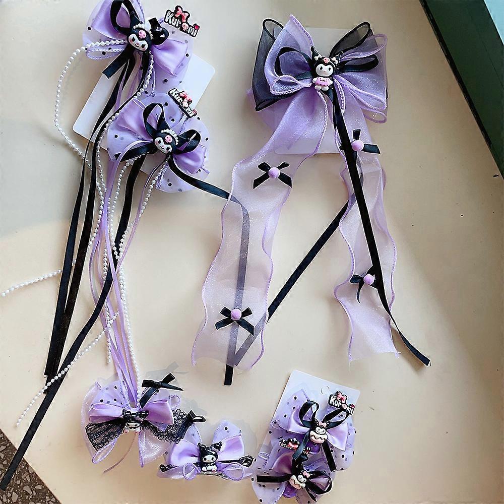 Girls Kuromi Hairpin Hair Band Kawaii Sanrios Hand Made Black Purple Lolita Hair Accessories Cartoon Jk Bow Hairpin Headdress