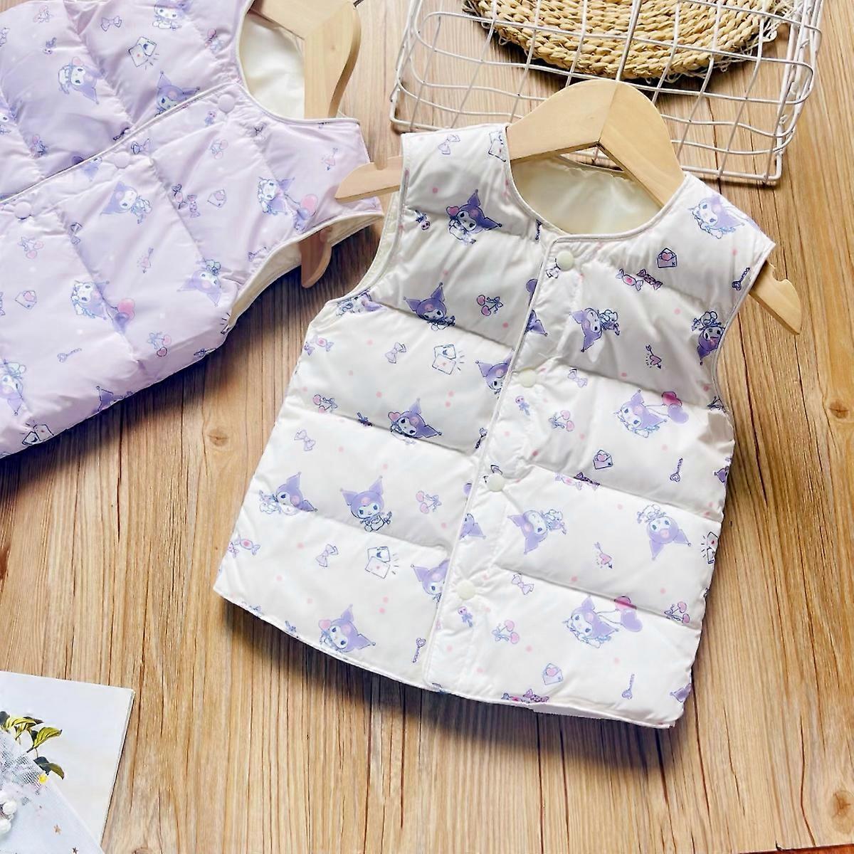 Sanrios Winter Kuromi Kids V-Neck Down Vest Anime Girl Down Full Printing Warm Zipper Jacket Wear Inside Cartoon Sleeveless Cute