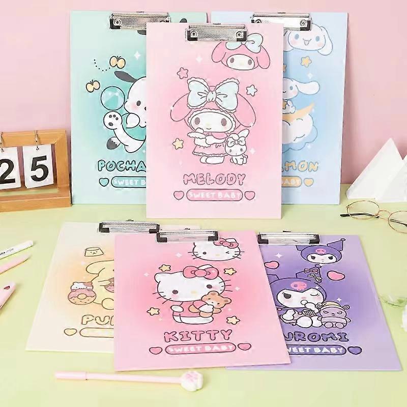 Kuromi Melody Sanrio Hello Kitty A4 Clipboard Files Clip Board Anime Files Test Papers Writing Hard Pad Student Stationery Gifts