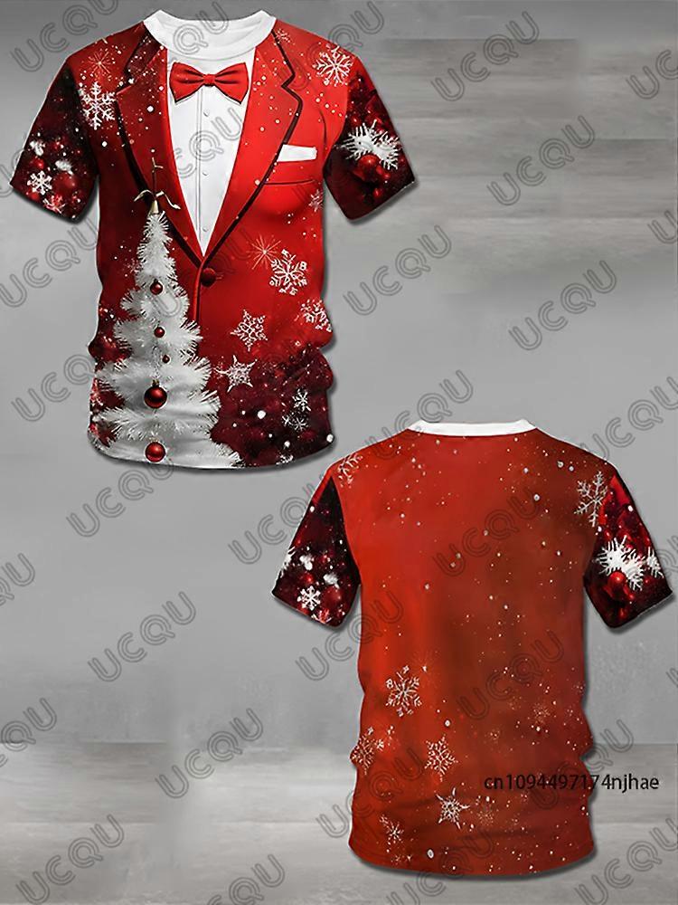 No?l nouveaux hommes flocon de neige et arbre imprim�� T-shirt 2026 nouvel ��t�� �� manches courtes vacances t-shirts d��contract�� surdimensionn��